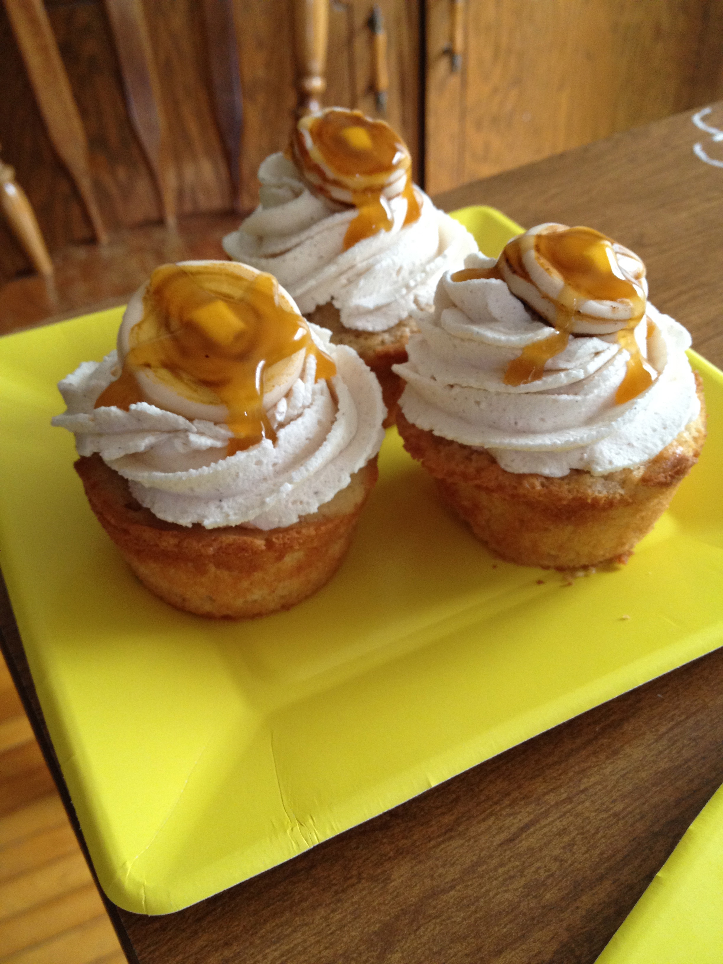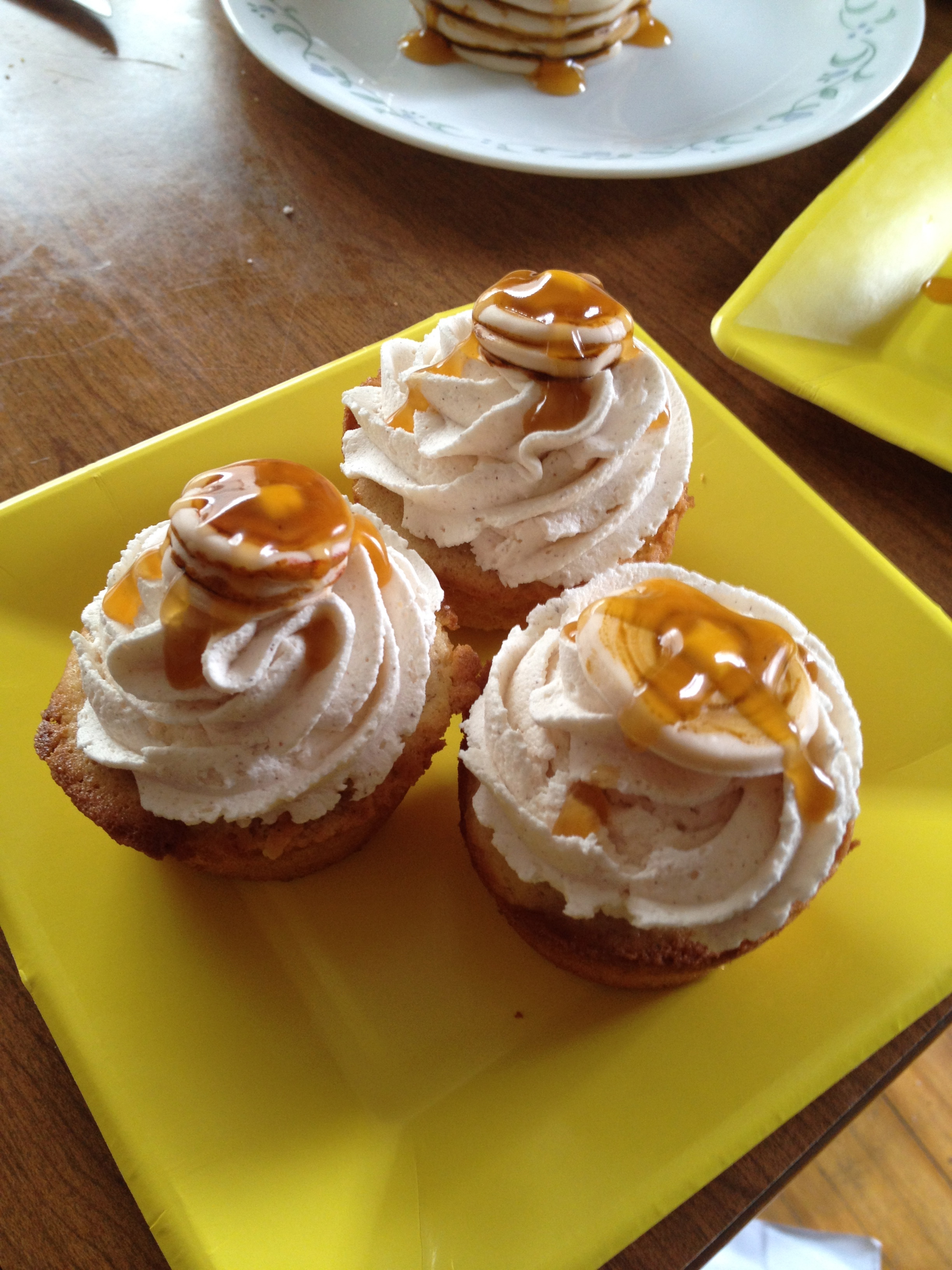 These cupcakes were also on the tray for my son’s 1st birthday. I just used my leftover french toast cake batter and made cupcakes, then pipped on leftover maple frosting and added a cute little fondant mini pancake and drizzle. HUGE HIT!