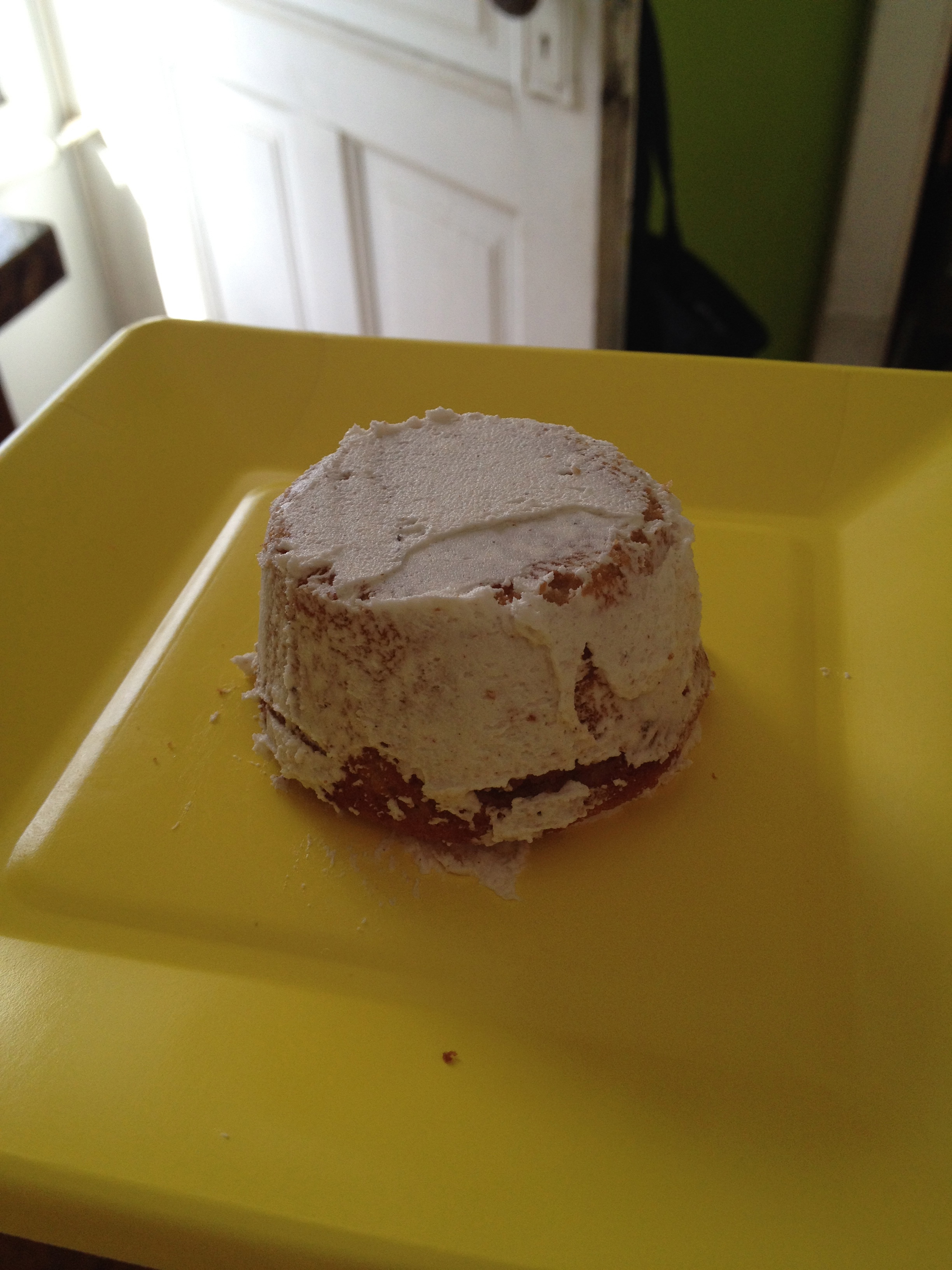 Step 4– Spread a thin layer of your buttercream on there. I’m not fancy, I just used a butter knife and started on top and worked my way around turning the plate.